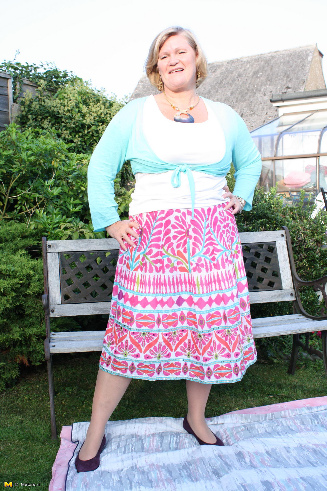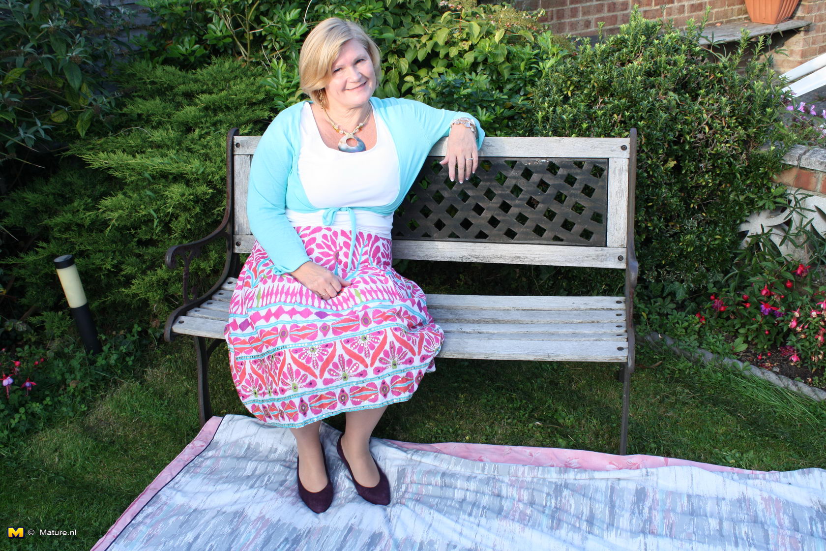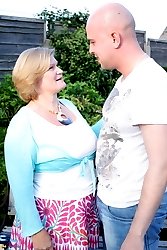 Naughty mature slut fucking a toy boy in the garden